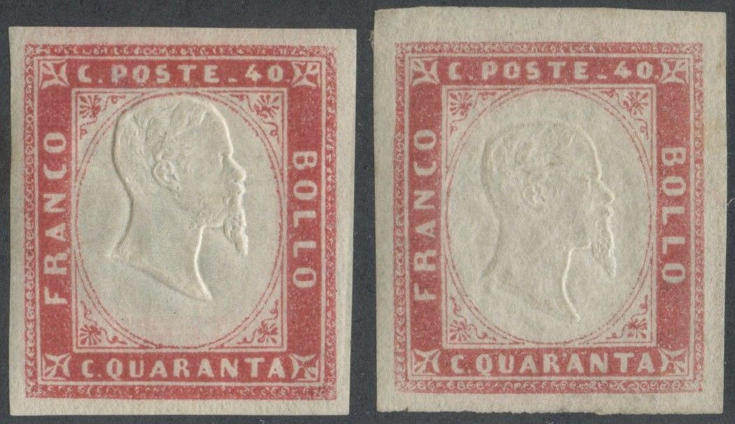 1862, 40 cent. in due diverse ed interessanti tonalità. Entrambi nuovi con gomma, linguellati. Ex Coll. Castelli.
