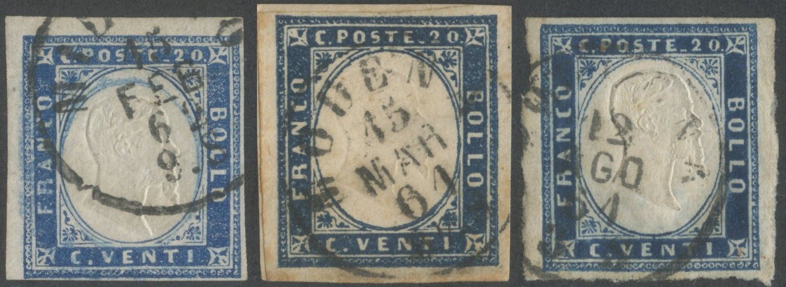 1861 - 20 cent. in tre diverse tonalità, tutti di buona/ottima qualità.