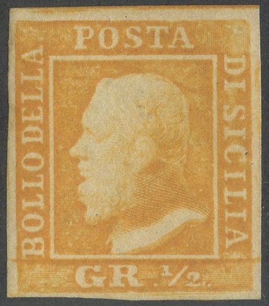 1859 - 1/2gr. Arancio carta di Palermo n.1 nuovo con gomma, linguellato. (A+) (Oliva, Alberto Diena)