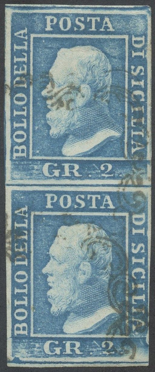 1859 - 2gr. azzurro I tav. n.6 in coppia verticale. (A+) (Alberto Diena, Vaccari)