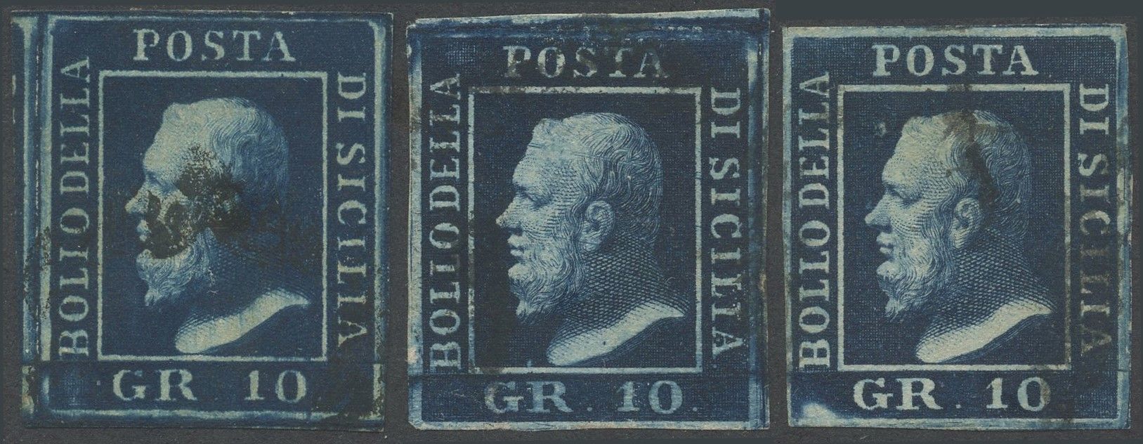 1859 - 10gr. tre esemplari di qualità straordinaria e firmati da Alberto Diena. (A+) (Alberto Diena, Emilio Diena)