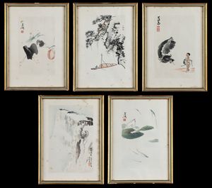 CINQUE STAMPE Cina, XX secolo Ognuna con cornice in legno e vetro protettivo. 37 x 27 cm ognuna (inclusa [..]
