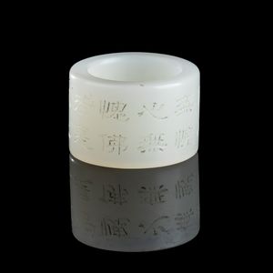 ANELLO DA ARCIERE IN GIADA CON ISCRIZIONI INCISE Cina, XX secolo 2 x 3 cm Provenienza: collezione privata [..]