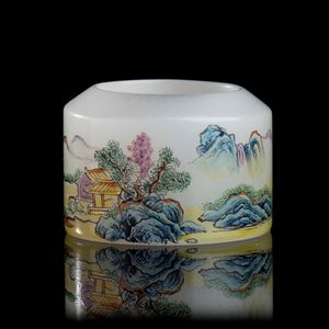 ANELLO DA ARCIERE IN VETRO DIPINTO  Cina, XX secolo 2,5 x 3,2 cm Provenienza: collezione privata italiana. [..]