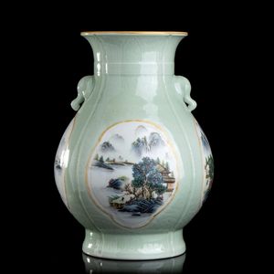 GRANDE VASO IN PORCELLANA CON DECORO A SMALTI POLICROMI Cina, XX-XXI secolo Marchio apocrifo di [..]