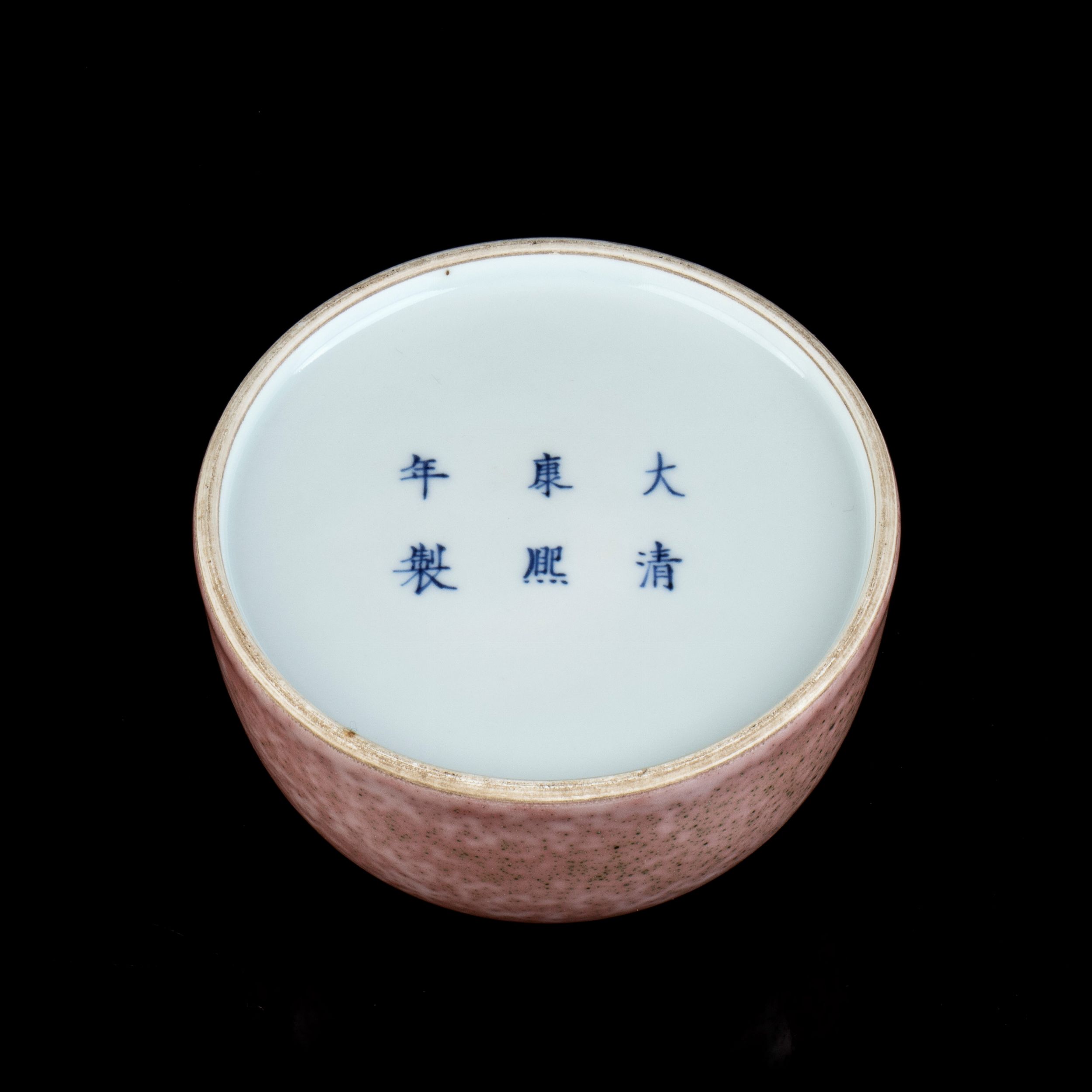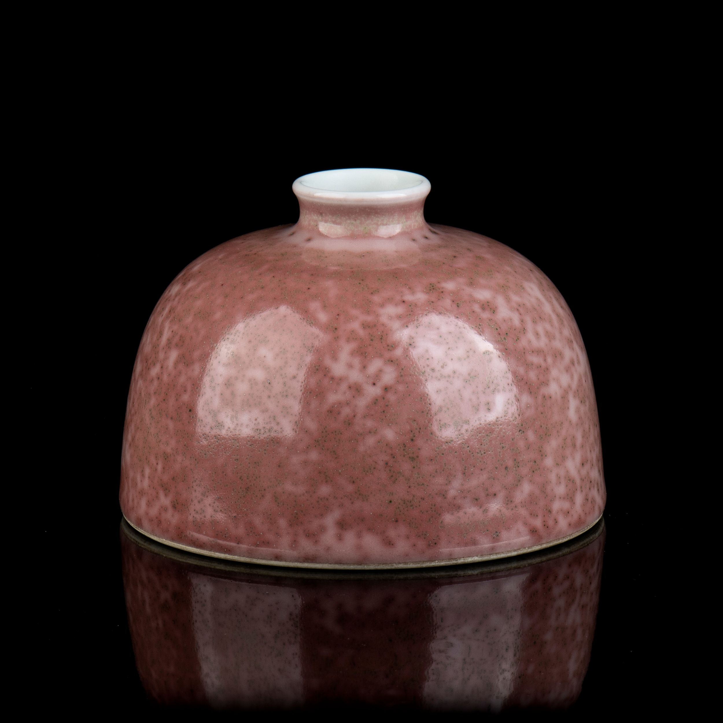 CONTENITORE PER ACQUA TABAIZUN IN PORCELLANA CON INVETRIATURA 'FIORE DI PESCO'Cina, XX secoloMarchio apocrifo di Kangxi al centro della base.9,5 x 15 cmProvenienza: collezione privata italiana.
