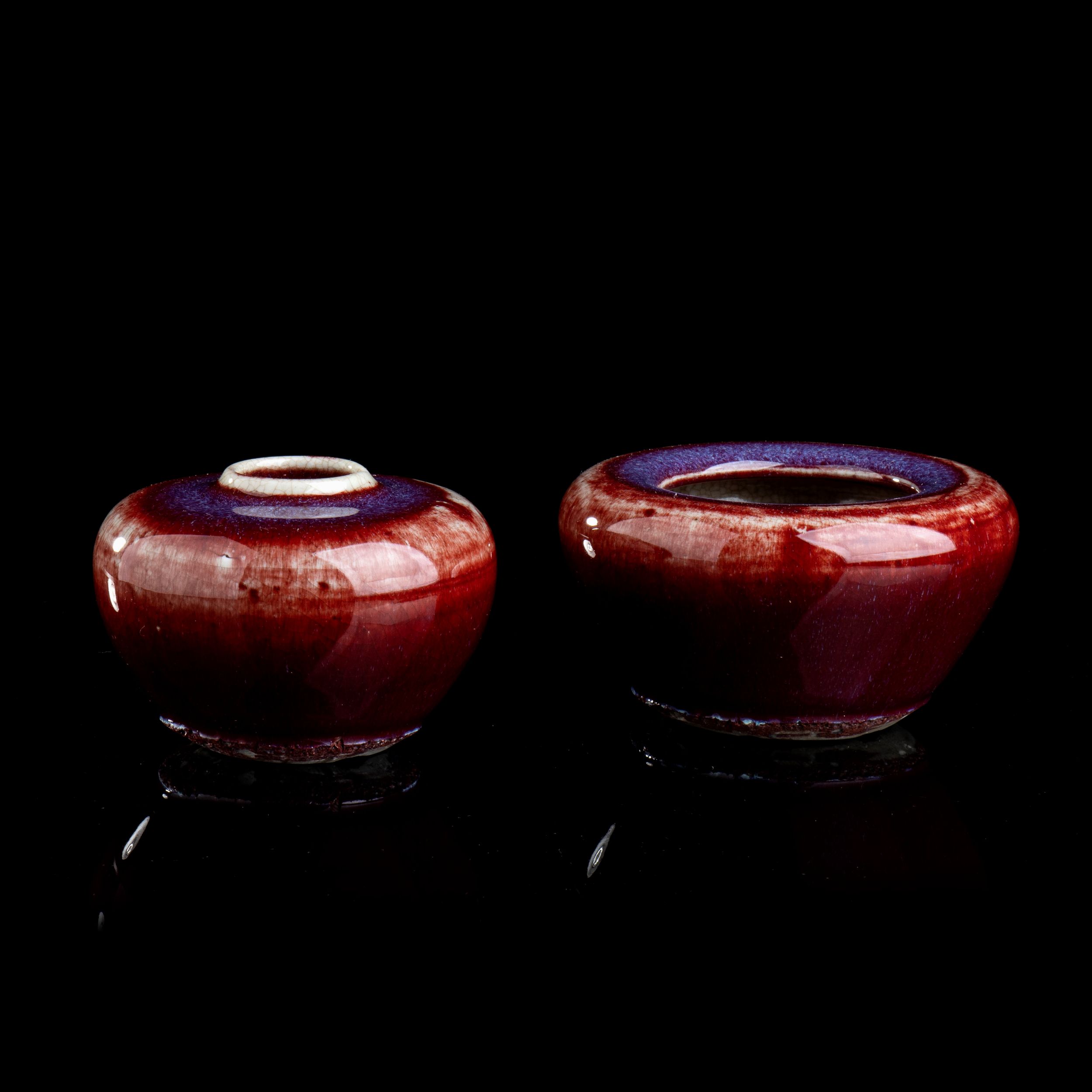 DUE CONTENITORI IN PORCELLANA CON INVETRIATURA FLAMBÉ
