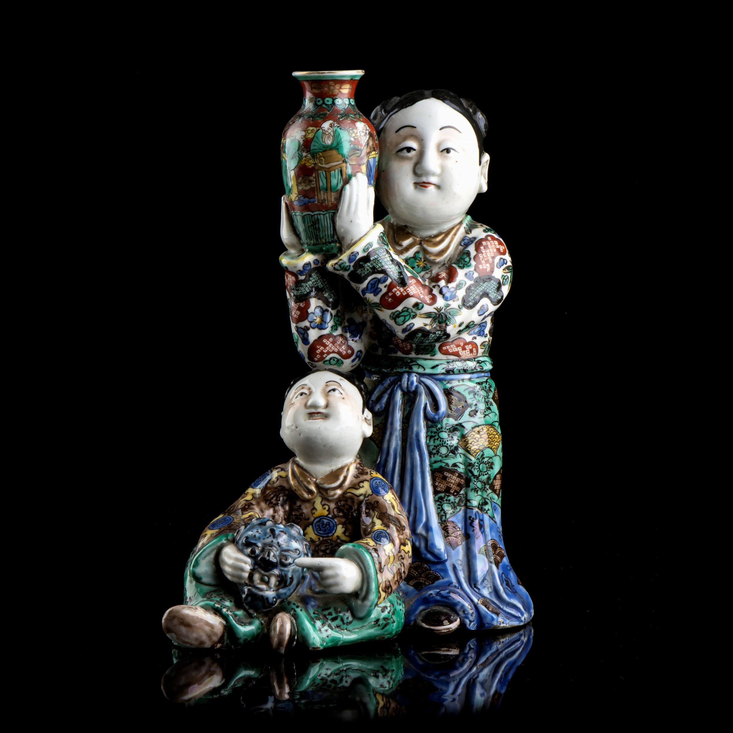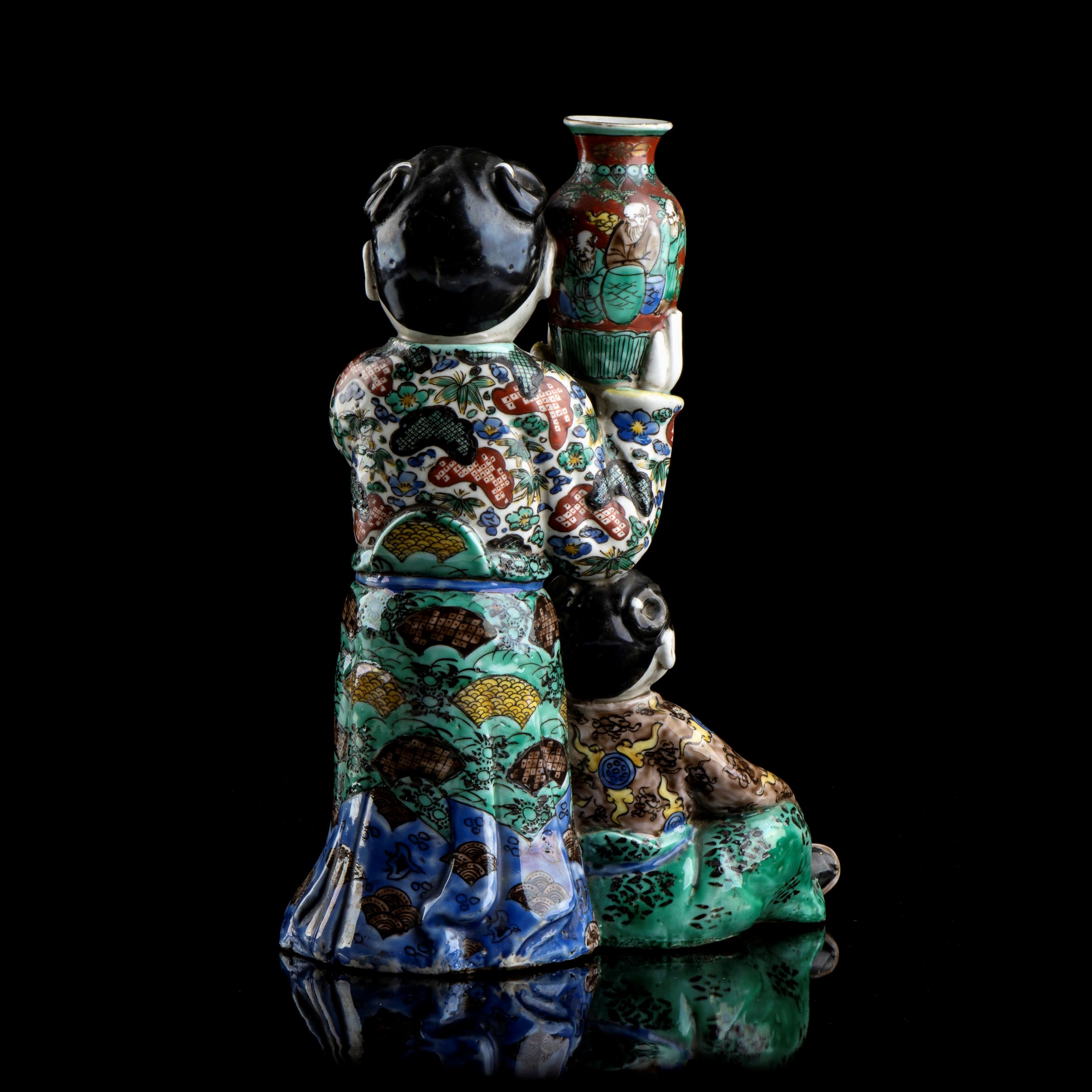 GRUPPO CON FIGURE IN PORCELLANA 'KUTANI' CON DECORO A SMALTI POLICROMIGiappone, periodo Meiji25,5 x 19 x 9 cmProvenienza: collezione privata italiana.