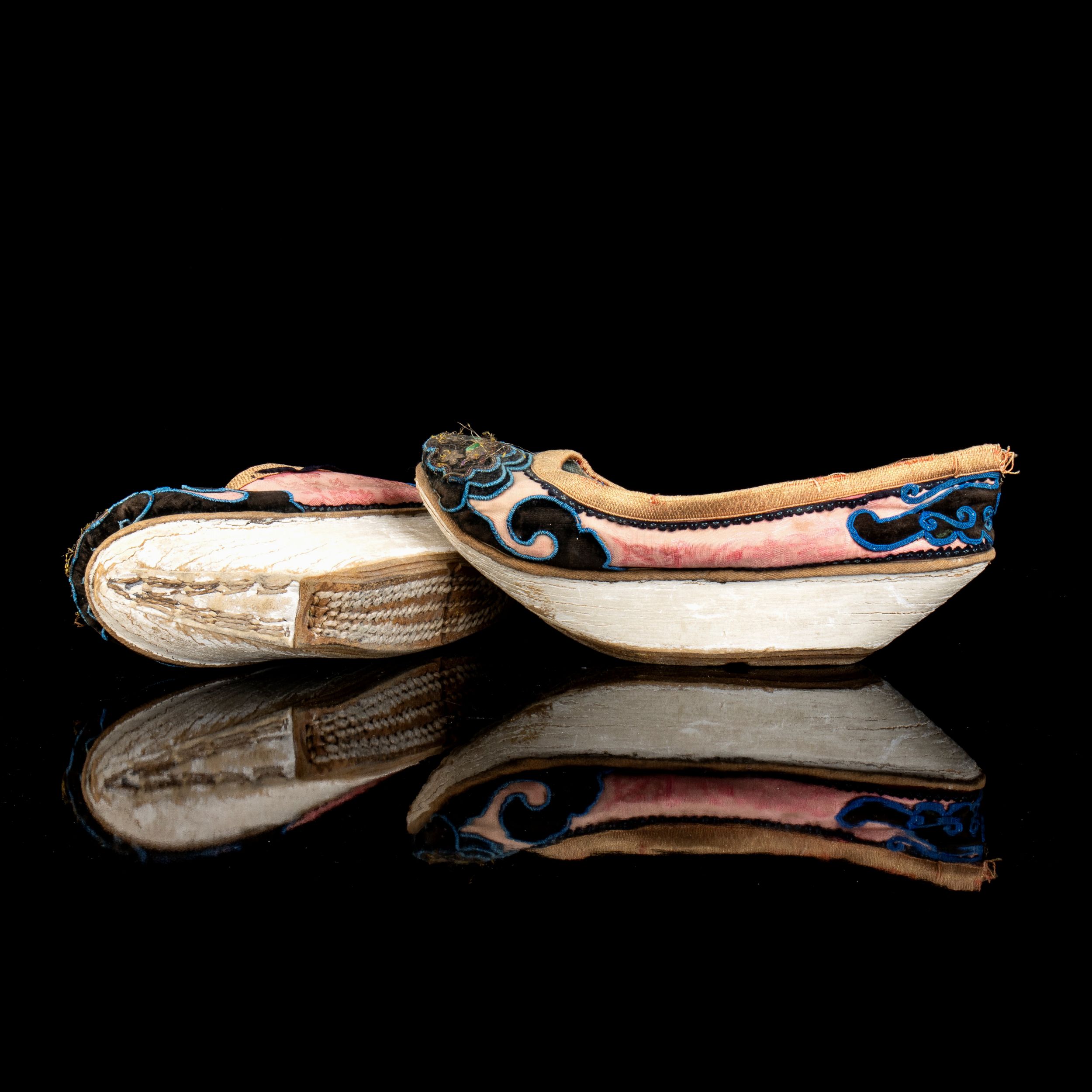 PAIO DI SCARPE FEMMINILI IN SETA LAVORATA A RICAMOCina, fine del XIX-inizio del XX secolo8,5 x 22,5 x 7 cm ognunaProvenienza: collezione privata italiana.