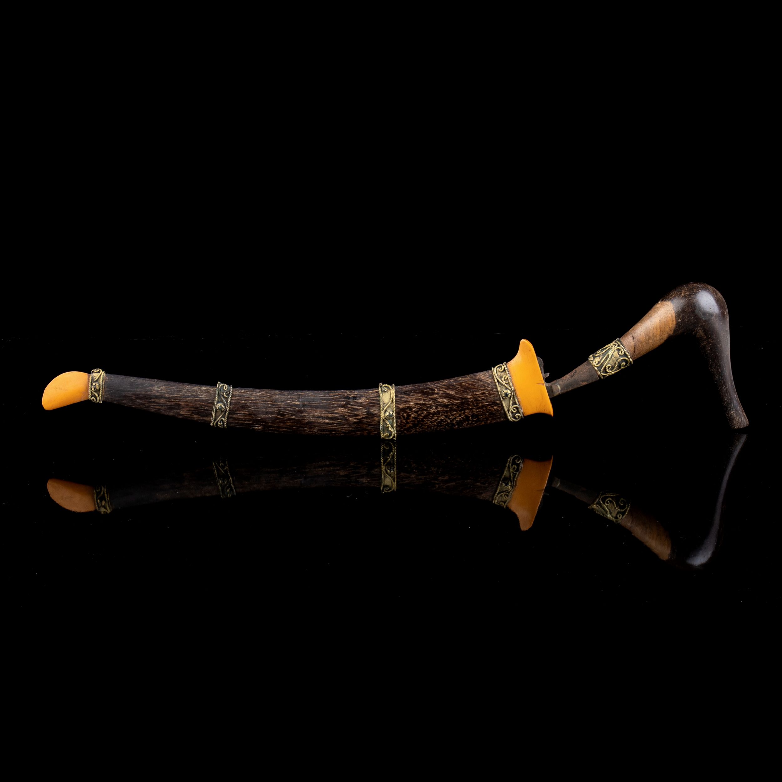 PUGNALE CON FODERO IN LEGNO E FINIMENTI IN METALLOMedio Oriente41 x 10 cm (incluso fodero)Provenienza: collezione privata italiana.