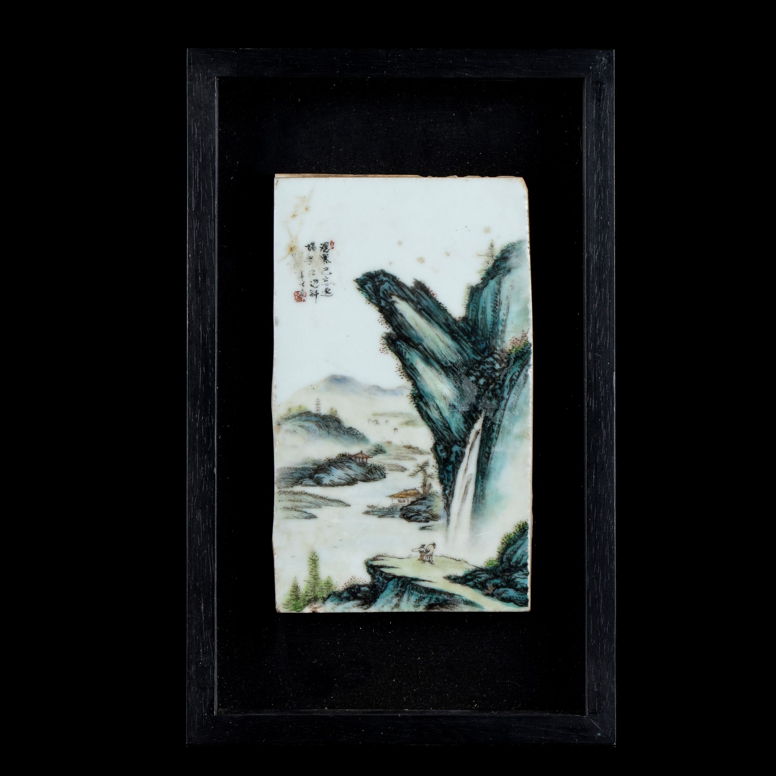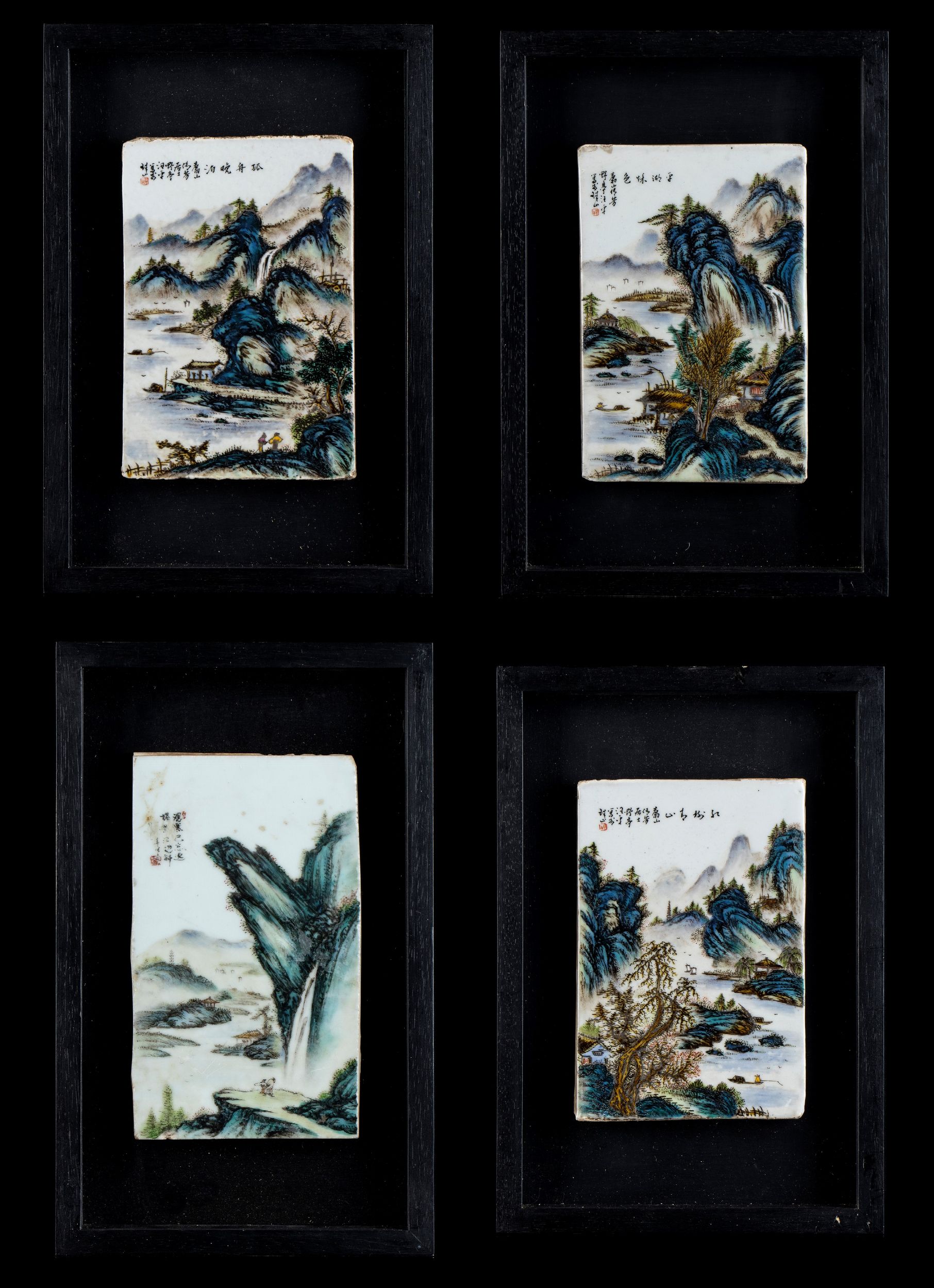 QUATTRO PIASTRELLE IN PORCELLANA CON DECORO A SMALTI POLICROMICina, XX secolo