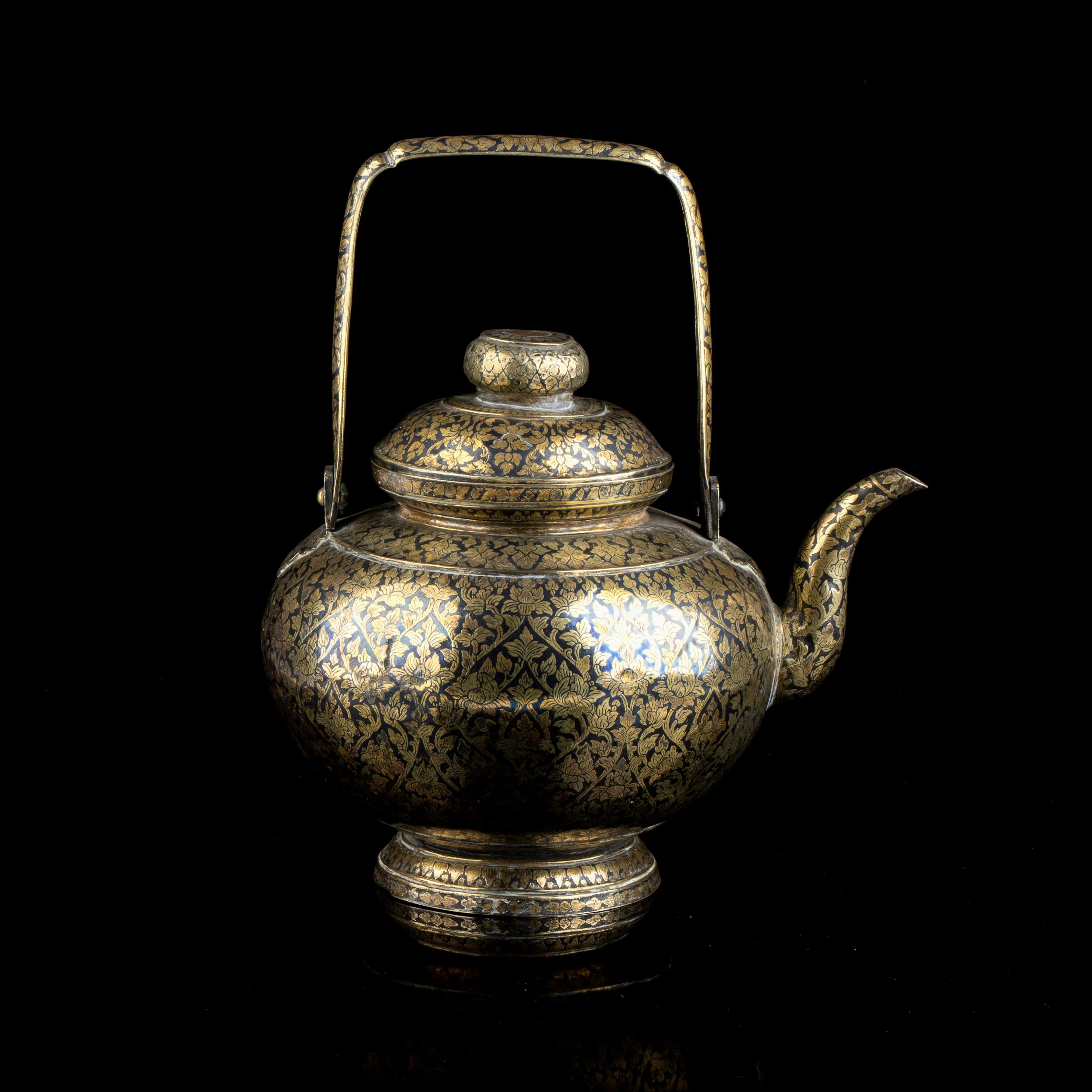 RARA E GRANDE TEIERA IN ARGENTO NIELLATO E DORATO