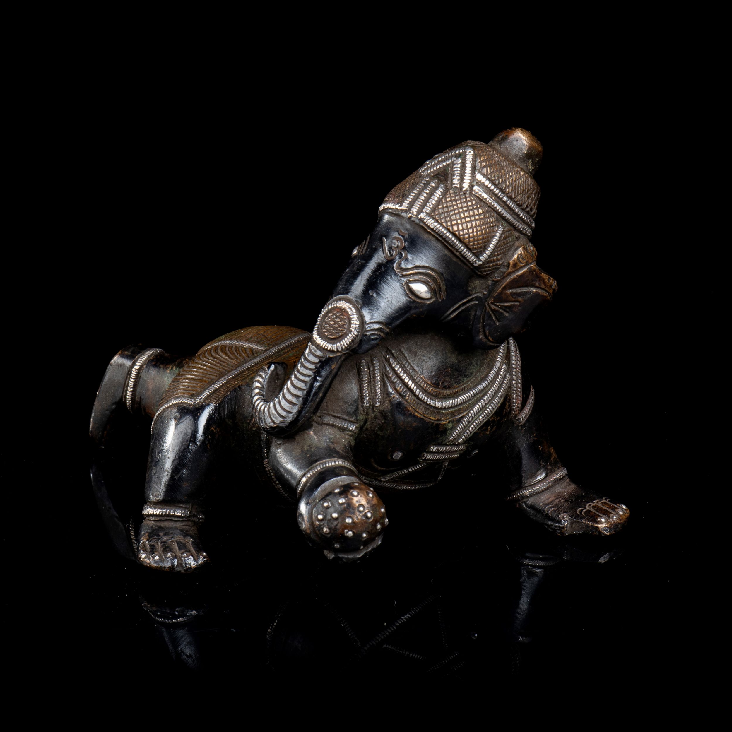 SCULTURA CON GANESHA IN BRONZO AGEMINATO IN ARGENTO