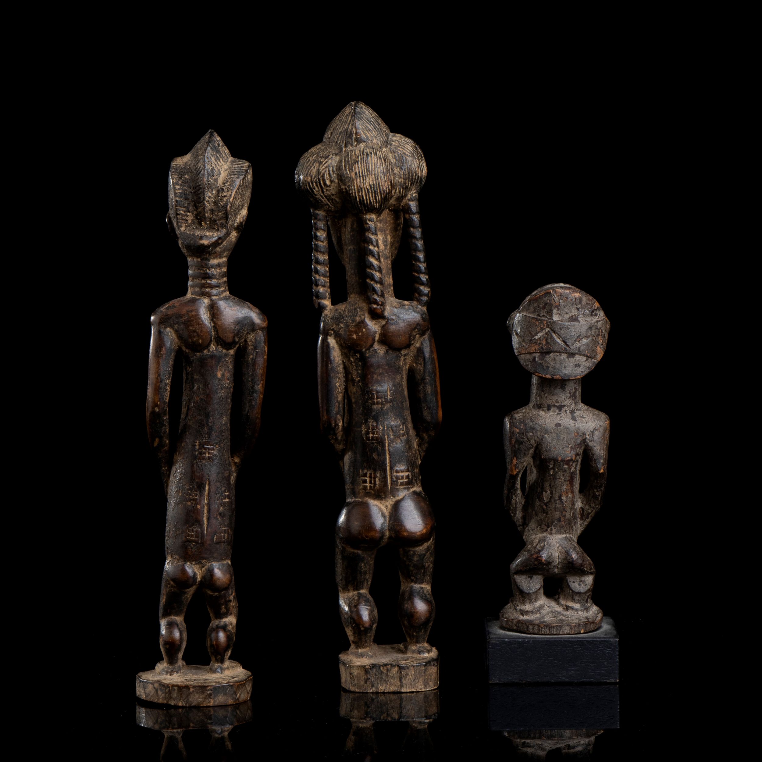 TRE SCULTURE ANTROPOMORFE IN LEGNO