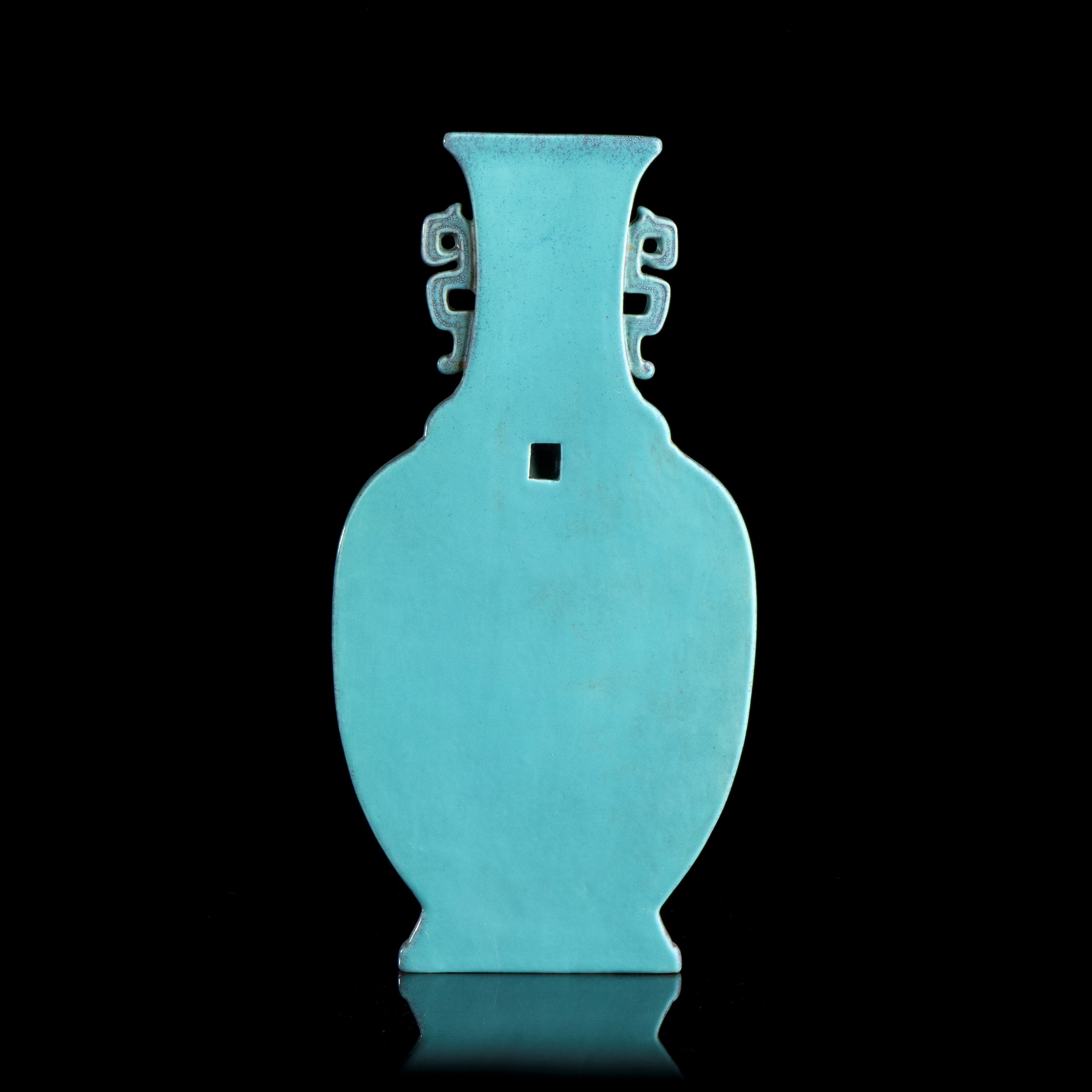 VASO DA MURO IN PORCELLANA CON INVETRIATURA 'ROBIN'S EGG'