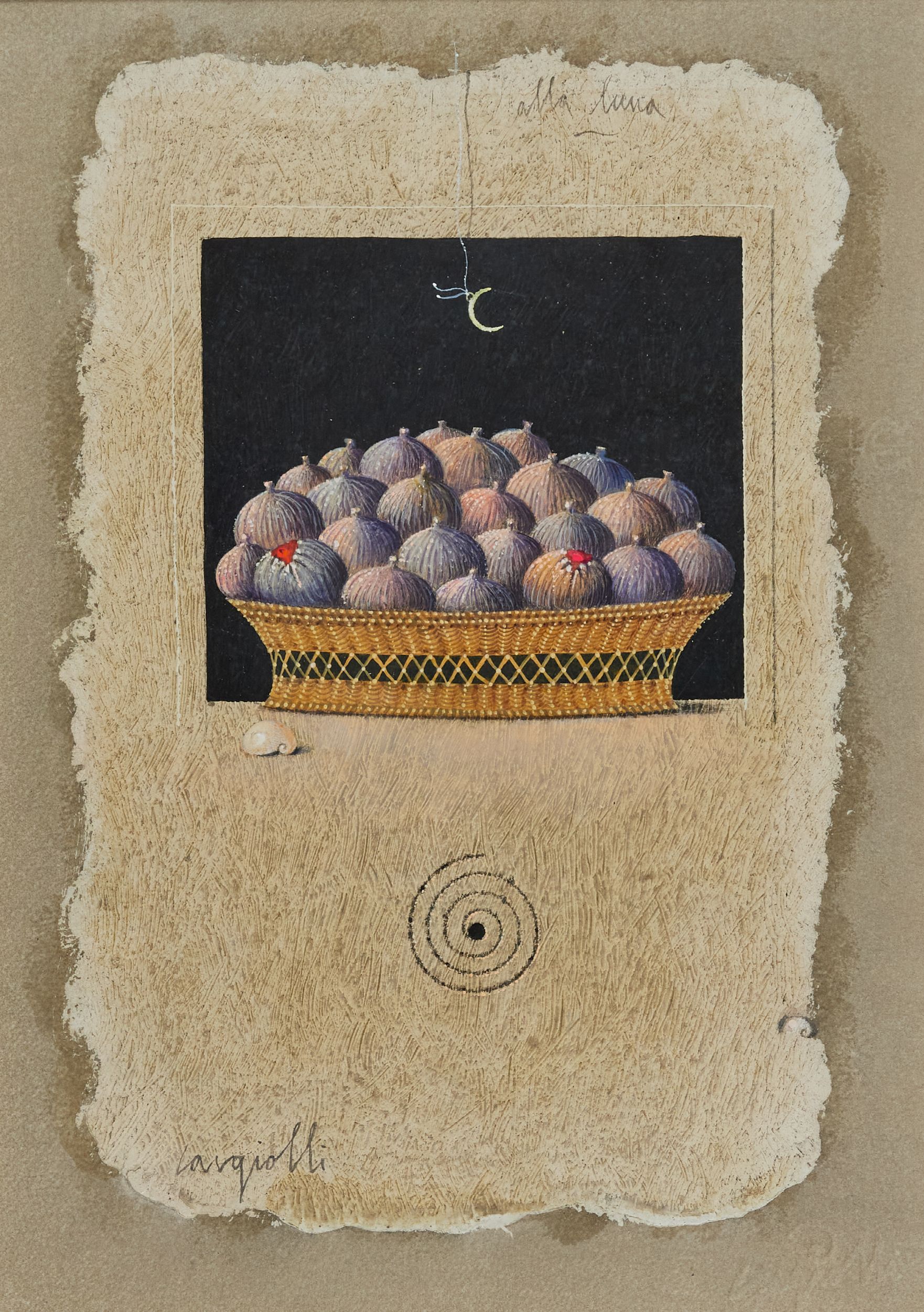 Firma in basso a sinistra, titolo in alto a destra e timbro a secco dell'Artista in basso a destra.