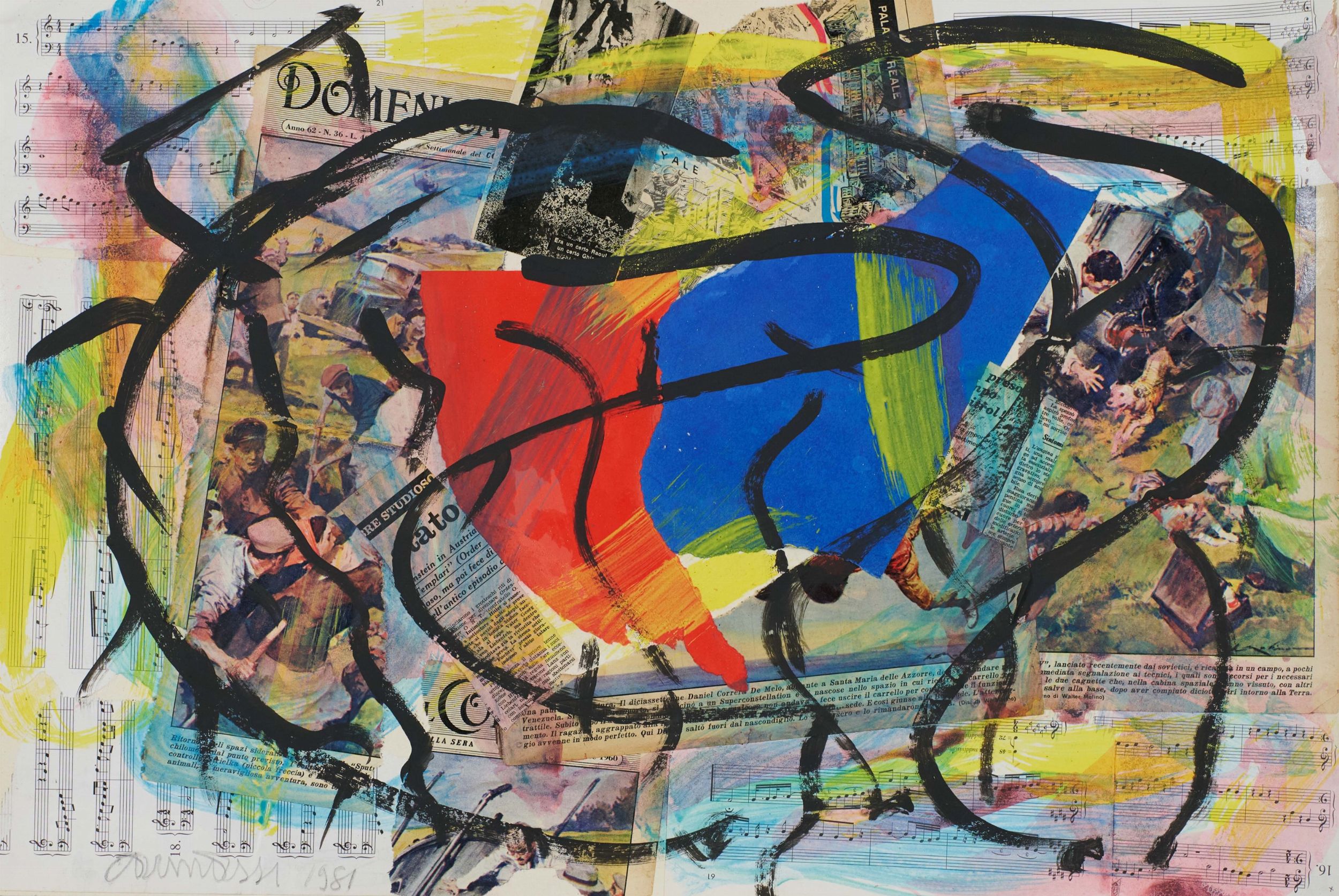 Tecnica mista e collage su cartone, cm. 49x72