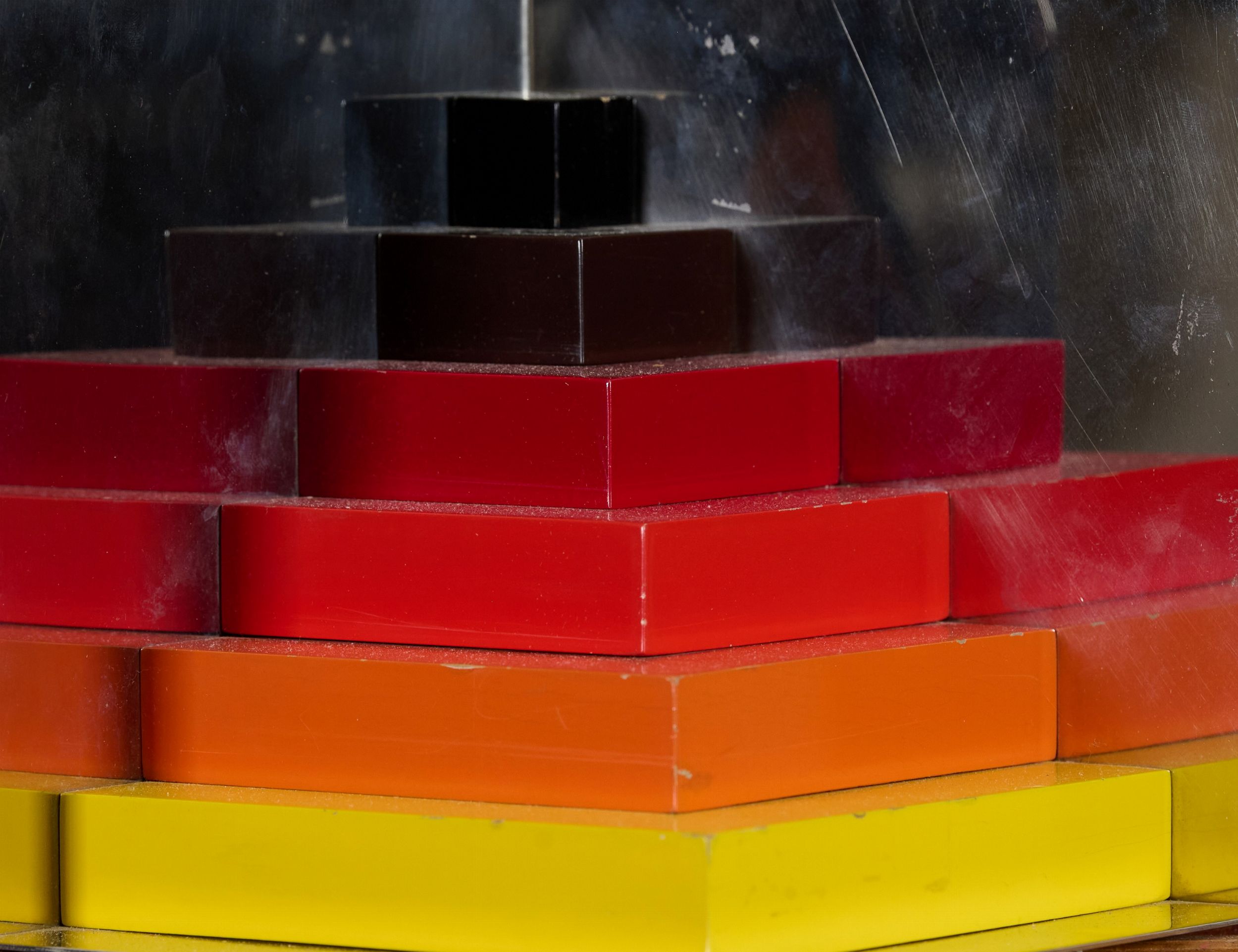 Legno dipinto e metallo, cm. 18x18x18