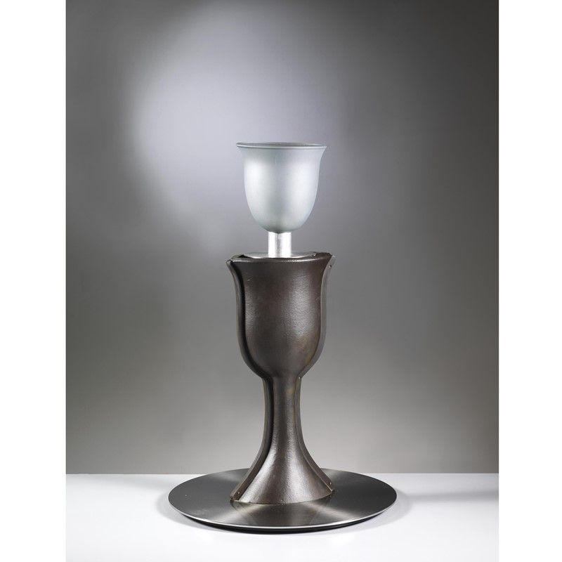 Andrea Branzi (Firenze 1938 - Milano 2023) LAMPADA DA TAVOLO EDIZIONE ETA’ DEL BRONZO in metallo, paralume in vetro Firmata, datata e numerata 6/20 Produzione Design Gallery, Milano, 2000 alt. cm 53 e diam. cm 33