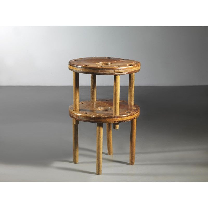 Edoardo Gellner (Abbazie, 1909 - Belluno, 2004) COPPIA DI SGABELLI PER LA COLONIA ENI DI BORCA DI CADORE in legno Produzione Italia, 1955 circa alt. cm 32 diam. cm 38