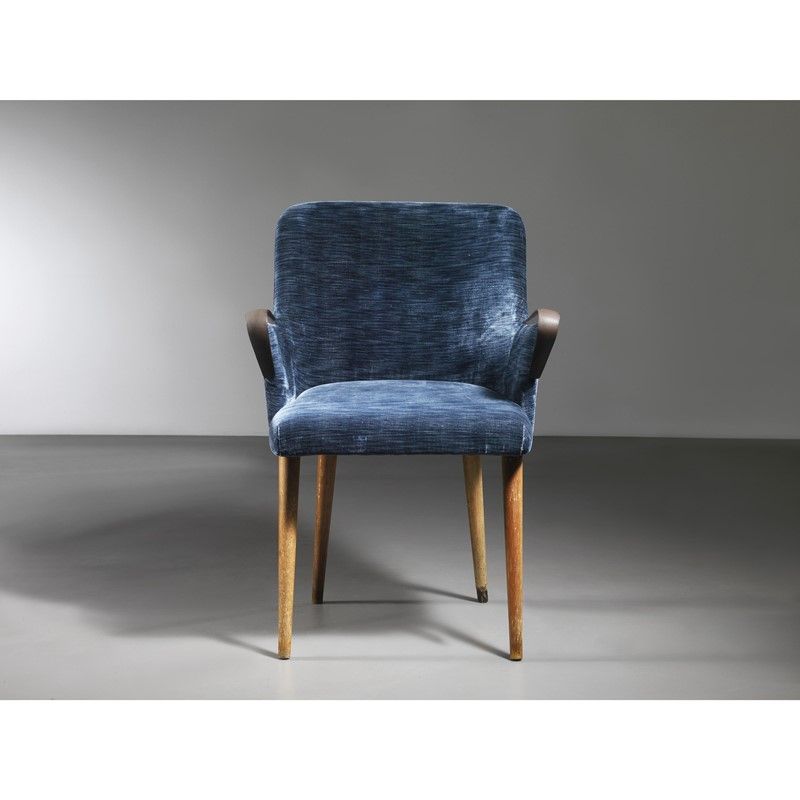 A PROTOTYPE OF «P38» ARMCHAIR, WOODEN STRUCTURE, BLUE VELVET UPHOLSTERY