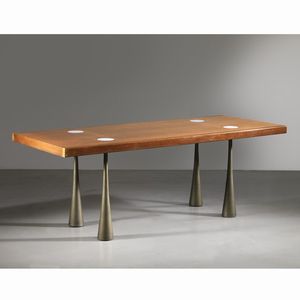 Angelo Mangiarotti (Milano, 1921 - 2012) TAVOLO zampe in metallo, ripiano in legno Produzione Italia, 1970 circa [..]