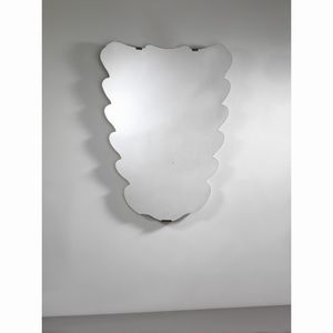 Attr. a Pietro Chiesa (Milano, 1892 - 1959) GRANDE SPECCHIERA SAGOMATA struttura in legno e dettagli in metallo [..]
