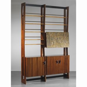 Carlo Keller (Cles, 1906 - Trento, 1982) LIBRERIA struttura in legno, dettagli in ottone, specchio e cristallo [..]