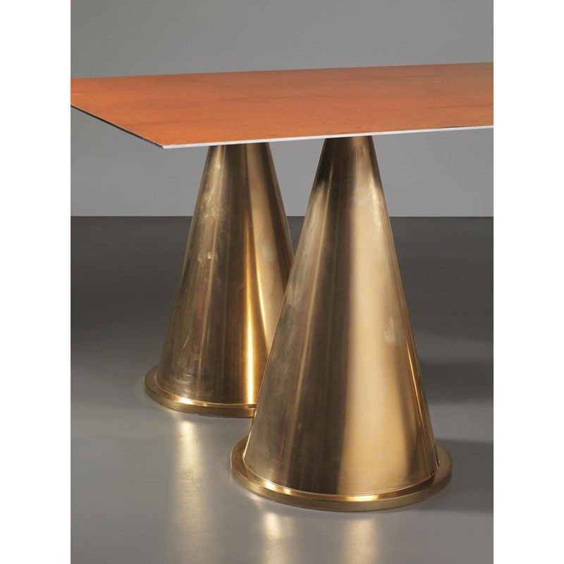 zampe in rame, ripiano in acciaio rivestito da pellicola stampata