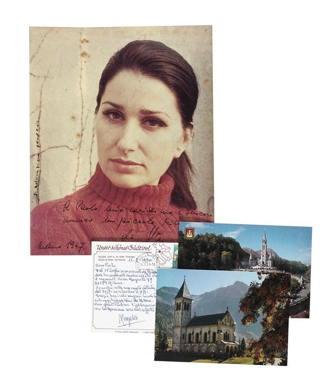 9 cartoline autografe e 1 fotografia in abiti di scena (Teatro alla Scala).