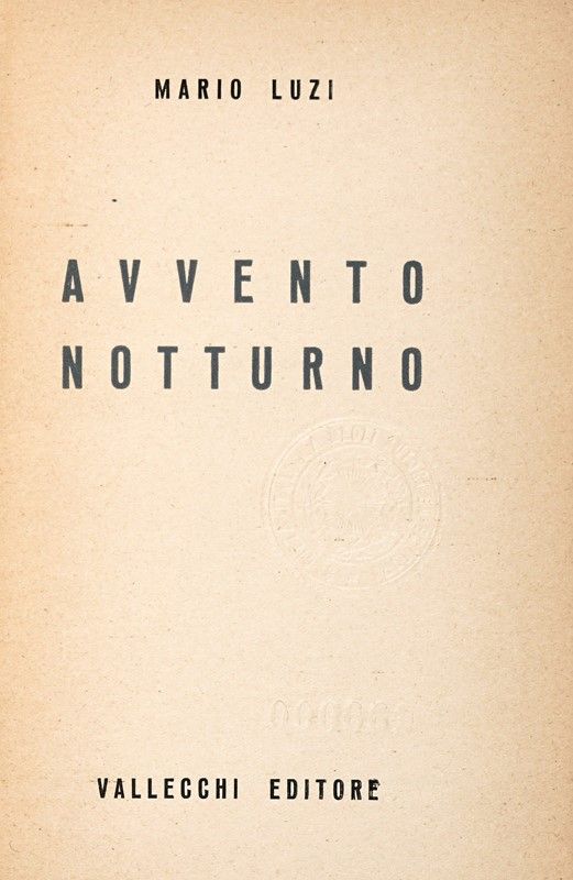 In-8° (mm 185x128). Ottima copia in barbe, con lievi e uniformi bruniture della carta. Brossura editoriale con titoli in nero e bianco al piatto. Segni di ossidazione al dorso e normale scoloritura perimetrale ai piatti. SI AGGIUNGE: Id., Biografie a Ebe. Firenze: Vallecchi, 1942.