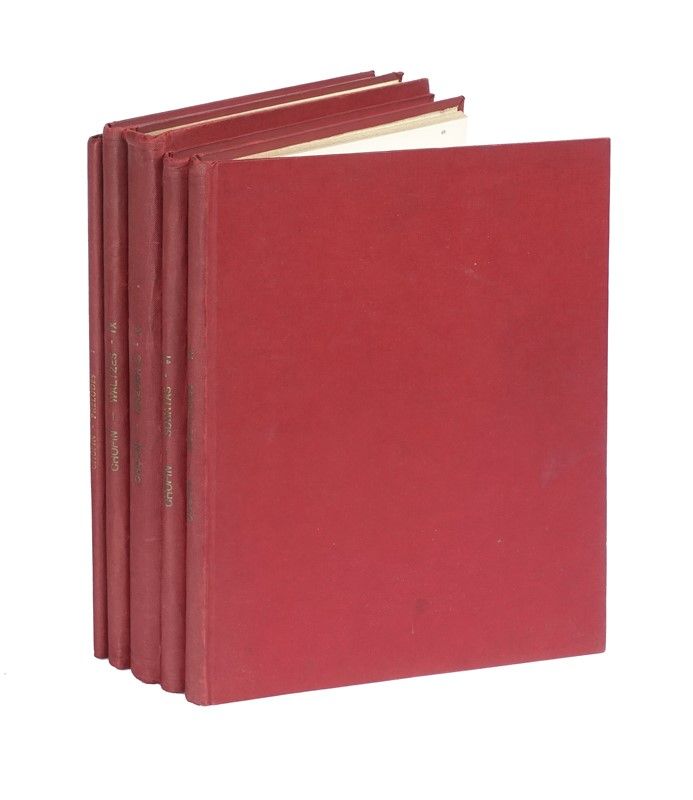 10 volumi in totale. Con timbro di precedente proprietà al frontespizio Aquinas Library Villa Schifanoia Florence.