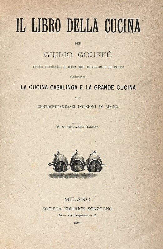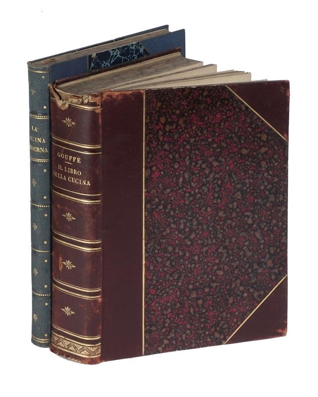 In-4° (mm 250x165). Grande antiporta xilografico e numerose incisioni in legno nel testo. Fioriture sparse e lievi e usuali bruniture. Legatura coeva in mezza pelle con piatti marmorizzati e punte; fregi e titoli dorati al dorso. Dorso parzialmente staccato, con mancanze alle cuffie e lievi brasioni marginali ai piatti. SI AGGIUNGE: La cucina moderna illustrata. Rivista quindicinale di cucina ed economia domestica. Dal n. 1 anno I al n. 24 anno I (1911).