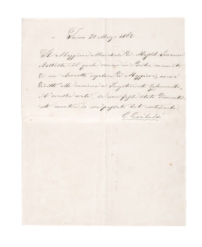 Manoscritto a inchiostro nero. 1 bifolio, scritta 1 pagina scritta. Dimensioni: 250x195 mm.