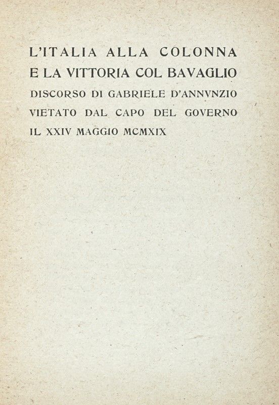 5) d'Annunzio Gabriele, L'Italia alla colonna e la vittoria col bavaglio. Roma: 1919.