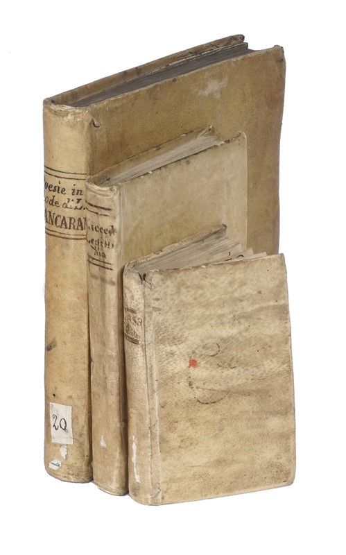 Compongono il lotto: 1) Della Casa Giovanni, Trattato [...] nel quale sotto la persona d'un vecchio idiota ammaestrante un suo giovanetto... In Venetia: Aprresso Ghirardo, 1626; 2) La cicceide legitima in questa terza impressione ordinatamento disposta... S.d.e. [i.e. 1750 ca.]; 3) Ferro Livio, Corone, et altre rime: in tutte le lingue principali del mondo... In Padoa: S.e., 1581 (Al colophon:) In Padoa: per Lorenzo Pasquati, 1581.