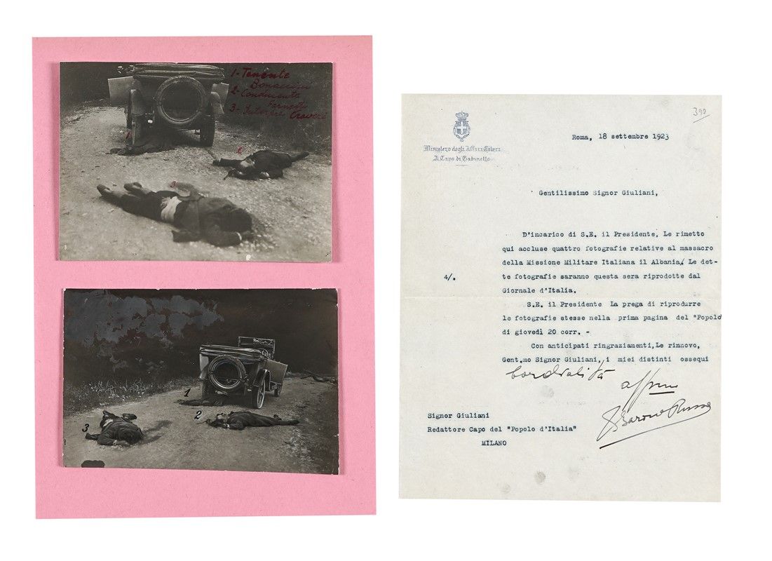 La raccolta contiene: Giulio Andreotti, Amintore Fanfani (4), Aldo Moro, Achille Lauro (3), Enrico De Nicola (12 biglietti da visita autografi e 3 telegrammi a stampa), Giuseppe Pella (7), Giovanni Gronchi, Francesco De Pinedo, Alberto Ascari, Luigi Orsini, Renato Donati, Arturo Ferrarini, Fiorenzo Magni, Ivanoe Bonomi, Giovanni Mardersteig (3), Ulrico Hoepli, Felice Le Monnier, Giuseppe Carabba (2), Anton Kippenberg (4), Nicola Zanichelli, 1 lettera e 4 fotografie relative al massacro della missione militare in Albania (datati 1923), alcuni francobolli con intestazione Onoranze Volta del 1927, 1 documento a stampa del Partito Fascista e alcuni volantini pubblicitari del Partito Comunista Italiano ecc. Lotto da vedere.