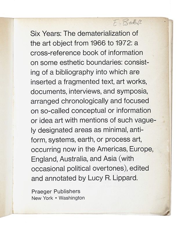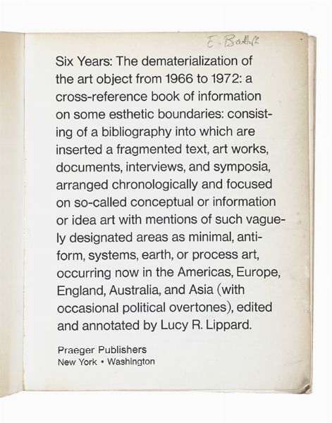 In-8° (mm 215x170). Fotoriproduzioni in bianco e nero nel testo. Ottima copia. Brossura editoriale con titoli ai piatti e al dorso. Strappetti marginali e qualche piega, altrimenti buona conservazione. SI AGGIUNGONO: Id., Pop art. New York: Praeger, 1966; Id., Changing essays in art criticism. New York: Dutton, 1971; Meyer Ursula, Conceptual art. New York: Dutton, 1972.