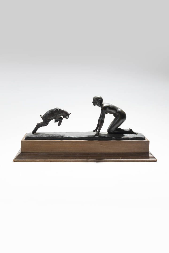 H. cm 14x41x9 scultura in bronzo poggiante su base lignea (misure base comprea 23x48x16) Opera firmata in corrispondenza della base