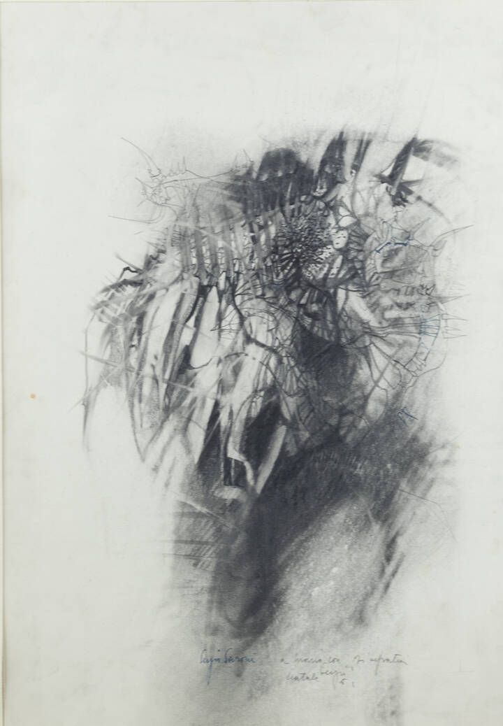 65x53 tecnica mista su carta Opera firmata in basso al centro e dedicata in basso al centro in data Natale 61