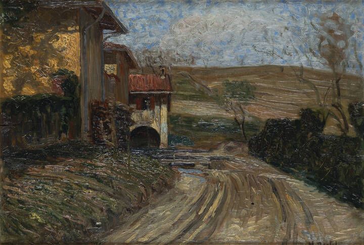 22 5x33 olio su tavoletta Opera firmata in basso a destra Fessurazione della tavola in corripondenza del lato sinistro a mezza altezza