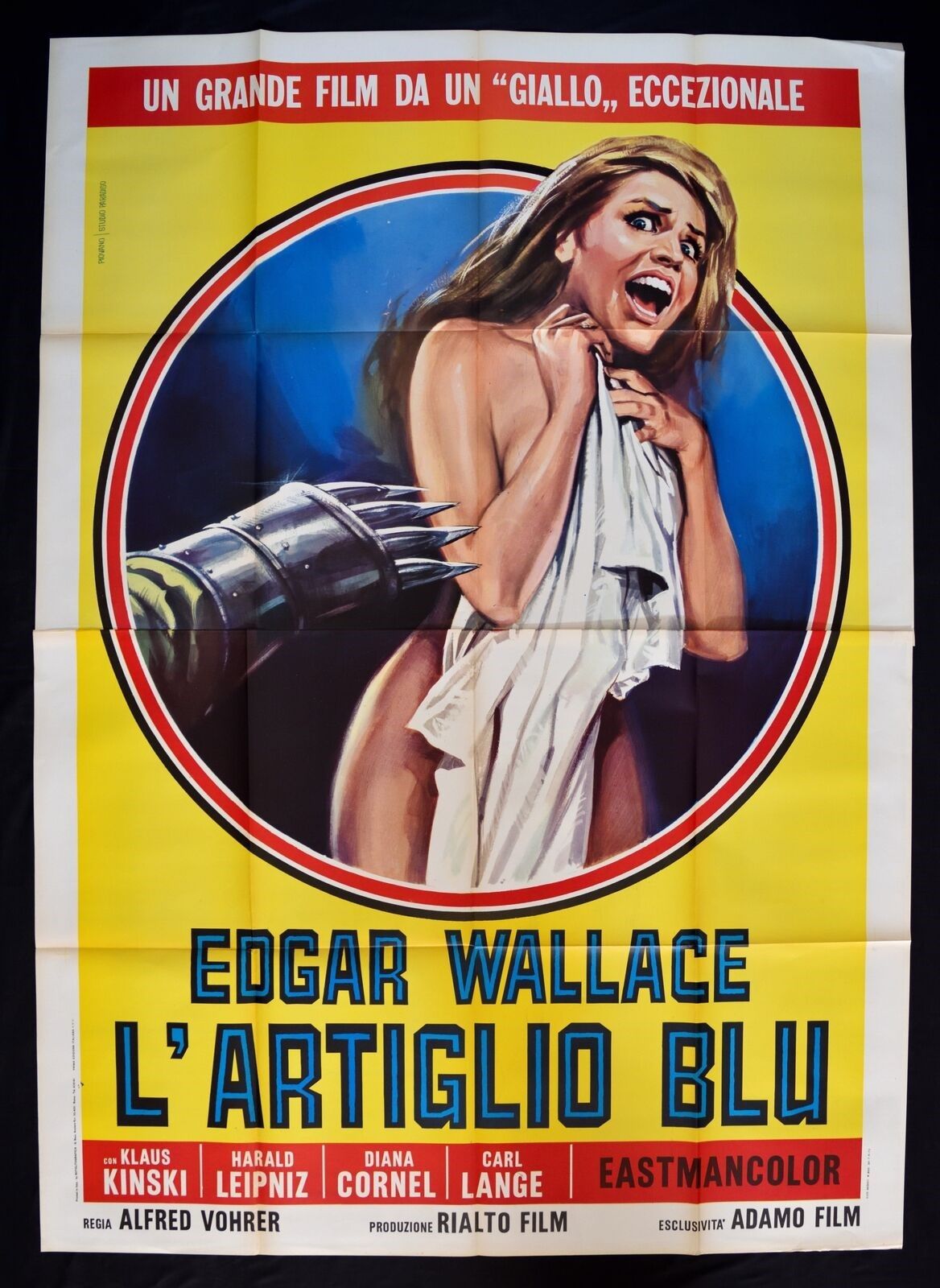 1967 Bozzetto originale realizzato da Piovano per la locandina ufficiale del film L'artiglio blu, diretto da Alfred Vohrer con Klaus Kinski e Ilse Steppat nel 1967. Firmato.