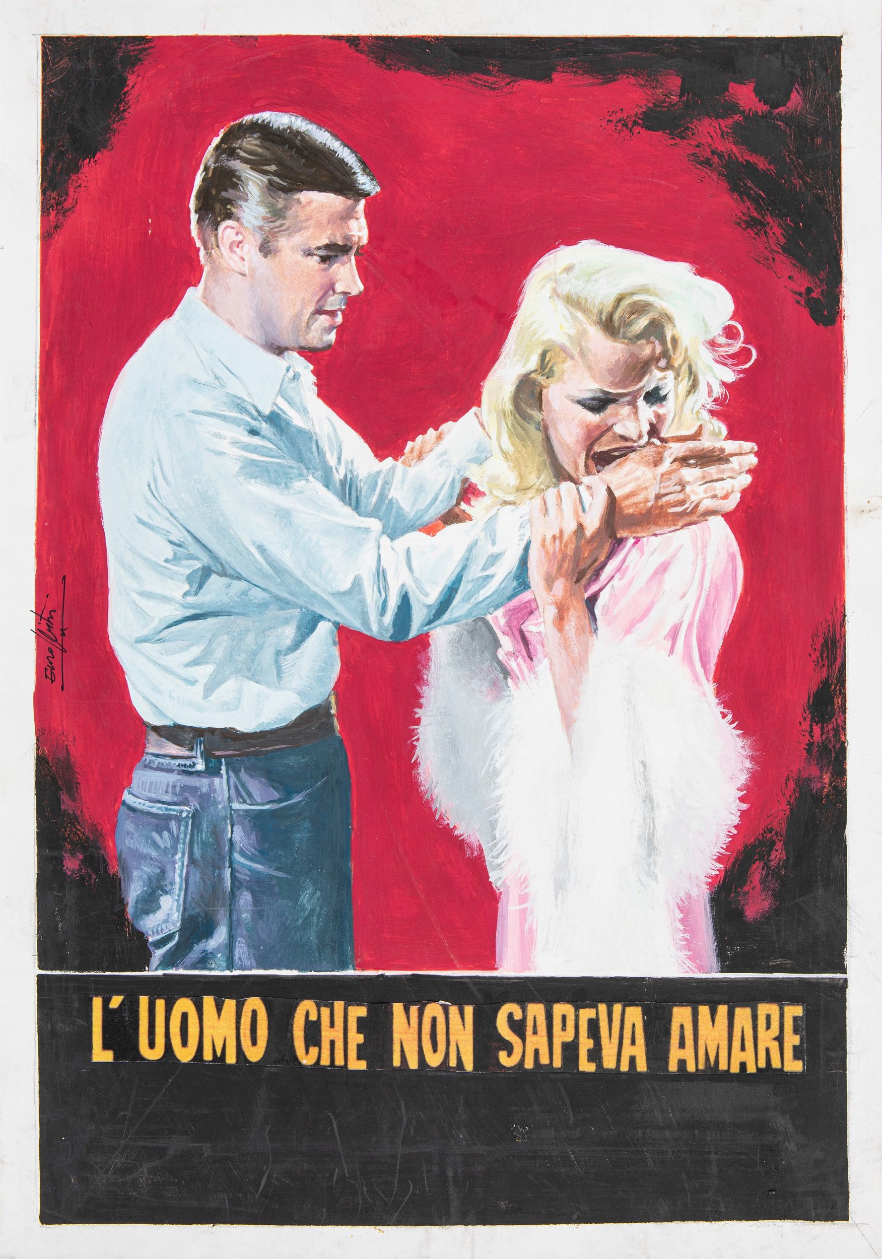 1964 Recreation realizzata da Nistri negli anni ’90 del suo celebre bozzetto per il film L'uomo che non sapeva amare, diretto da Edward Dmytryk con George Peppard e Alan Ladd nel 1964. Titolo in fotocopia. Firmato.