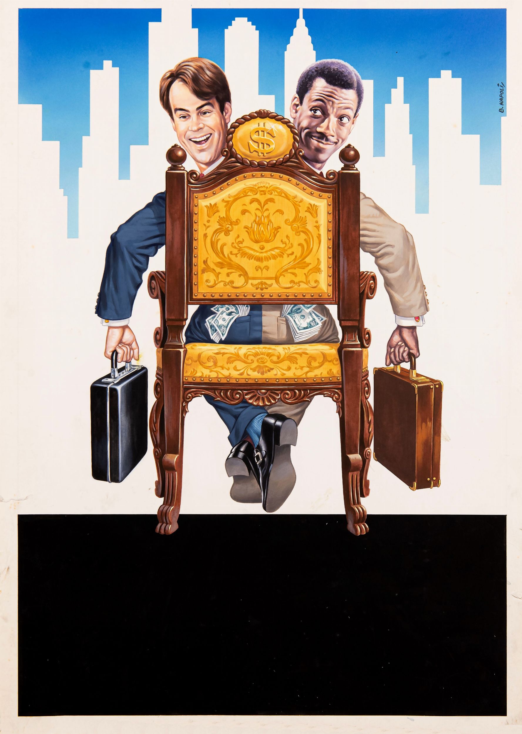 tempera su cartone, 32,5 x 45,5 cm 1983 Bozzetto originale realizzato da Napoli per la locandina ufficiale del film Una poltrona per due, diretto da John Landis con Dan Aykroyd, Eddie Murphy e Jamie Lee Curtis nel 1983. Un´opera da museo, divenuto un cult da oltre vent'anni come simbolo per eccellenza della programmazione televisiva natalizia. Piccoli strappi ai margini laterali e lieve piega all'angolo inferiore sinistro. Firmato.