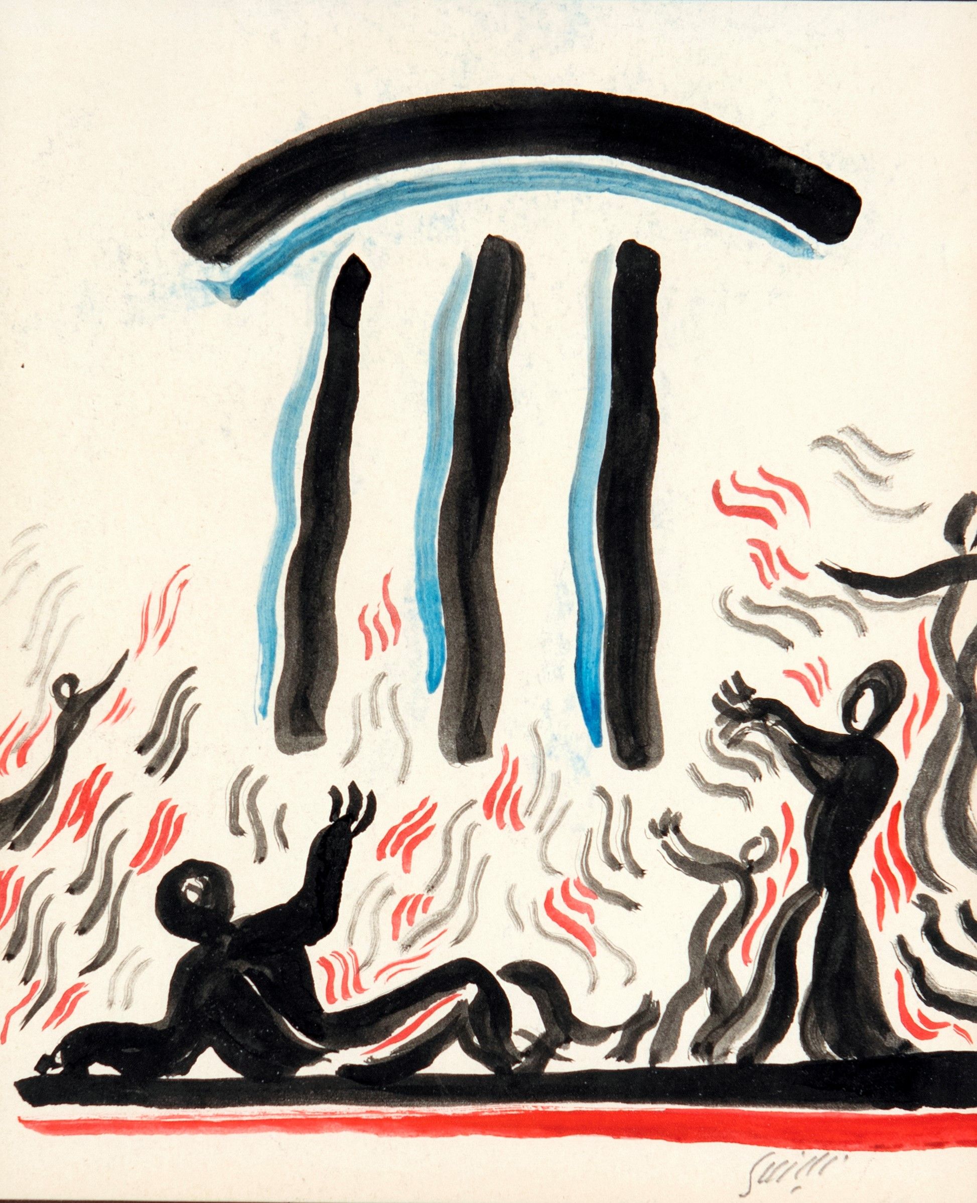 1959 Firma in basso a destra Guidi. Al verso reca firma, data e autentica Virgilio Guidi / 1959 / Autenticato il 3 Marzo 1971 / per Viola Bonelli / Guidi.