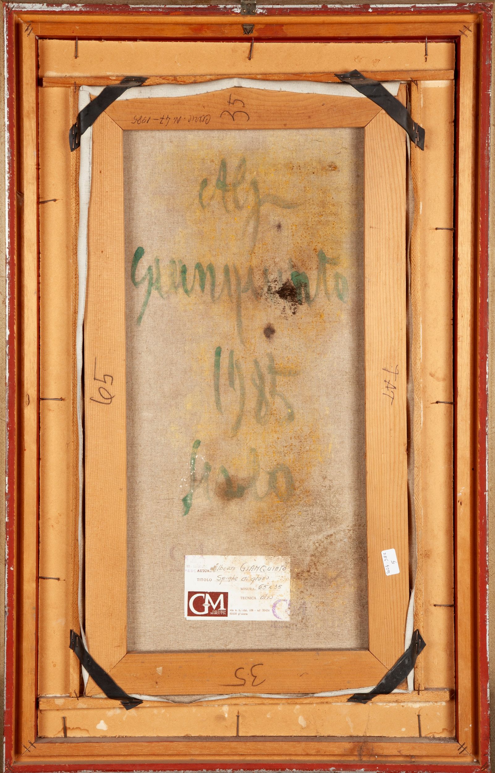 1985 Monogramma sul fronte AG. Al verso reca firma, anno Alg Gianquinto 1985. Etichetta della Galleria Margutta di Pescara