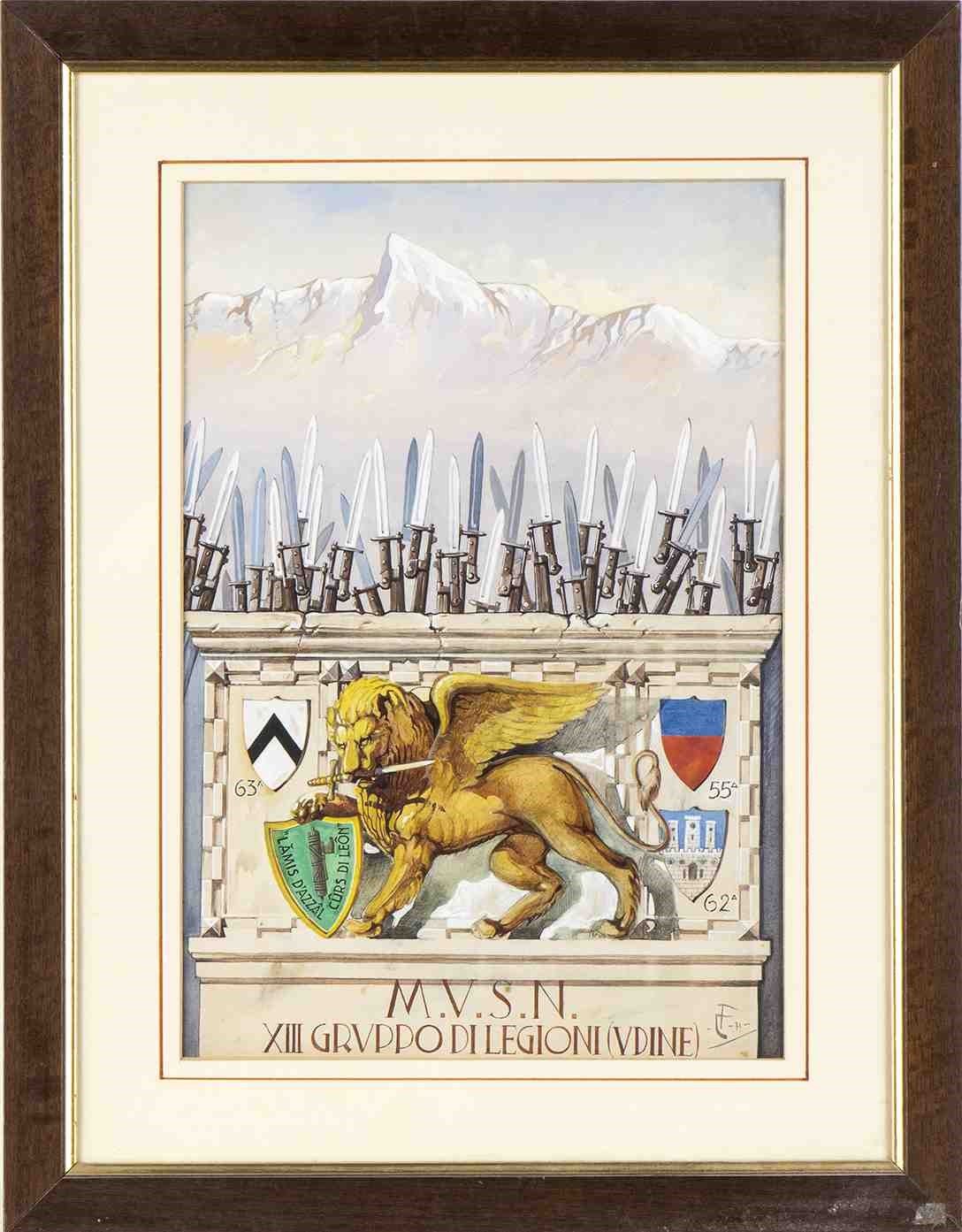 Militaria... tempera su carta, siglata, 1931, 50 x 38 cm