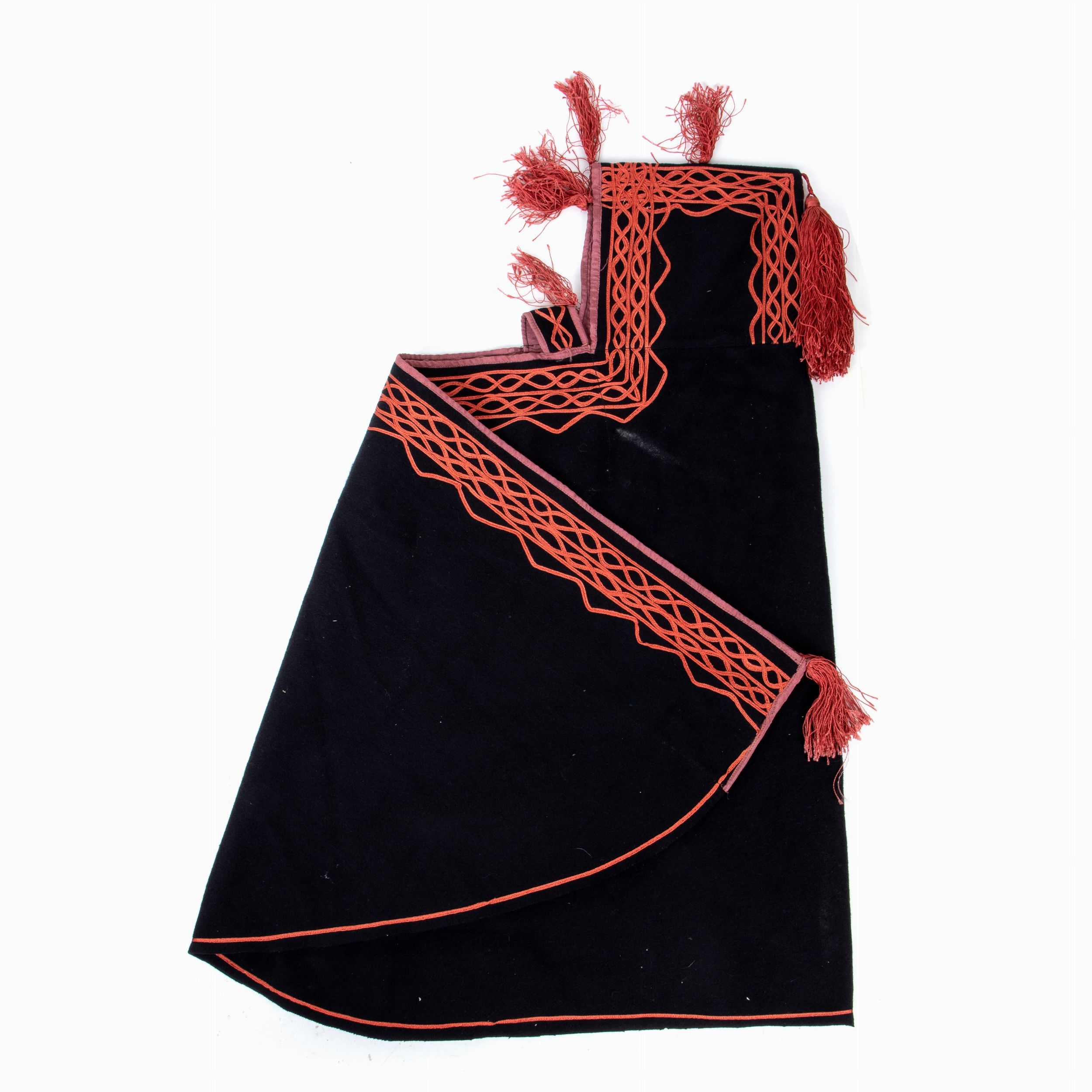 seconda metà XX sec. in panno di lana blu turchino con applicazioni di fettuccia di cotone rossa, copia esatta di burnus regolamentare di Cavalleria