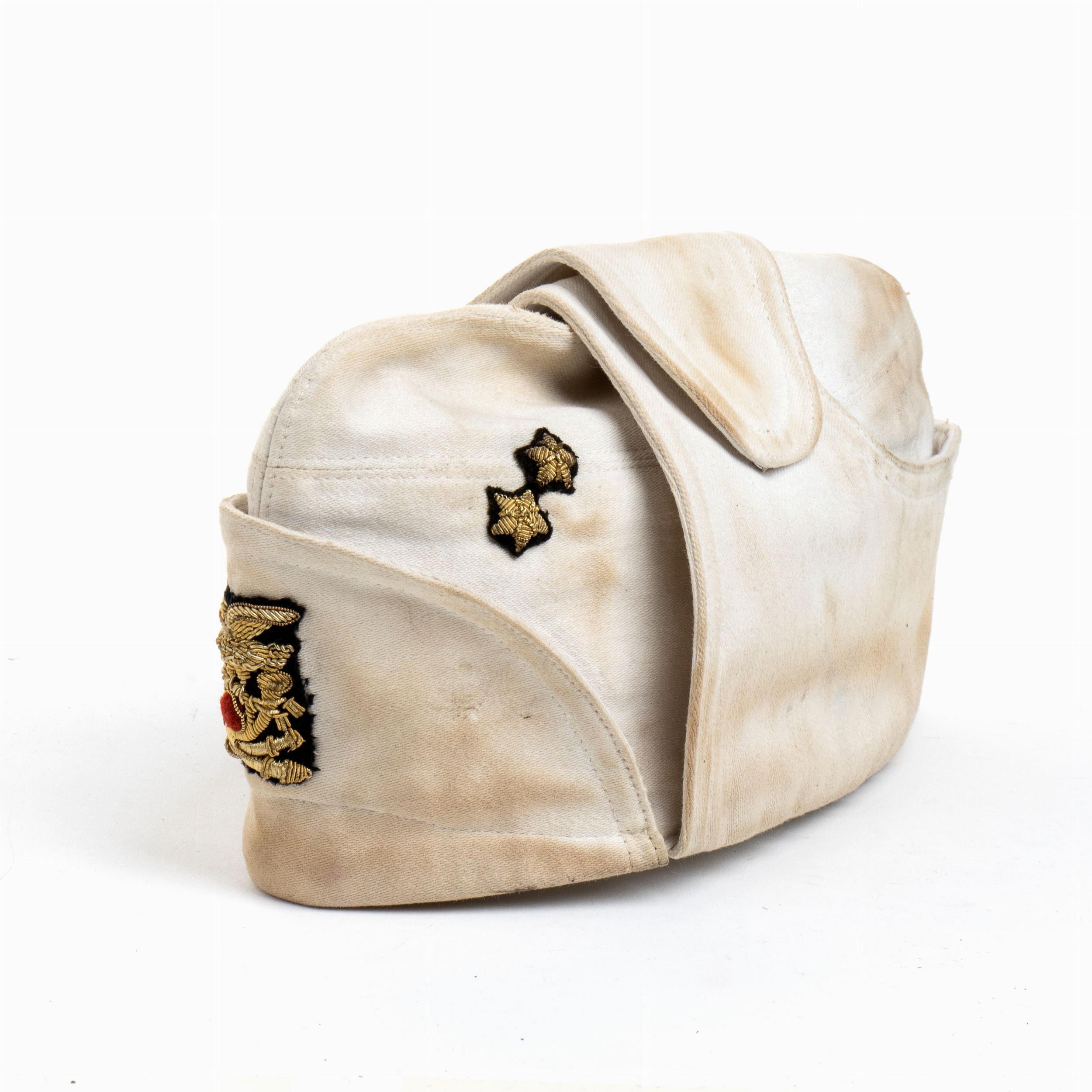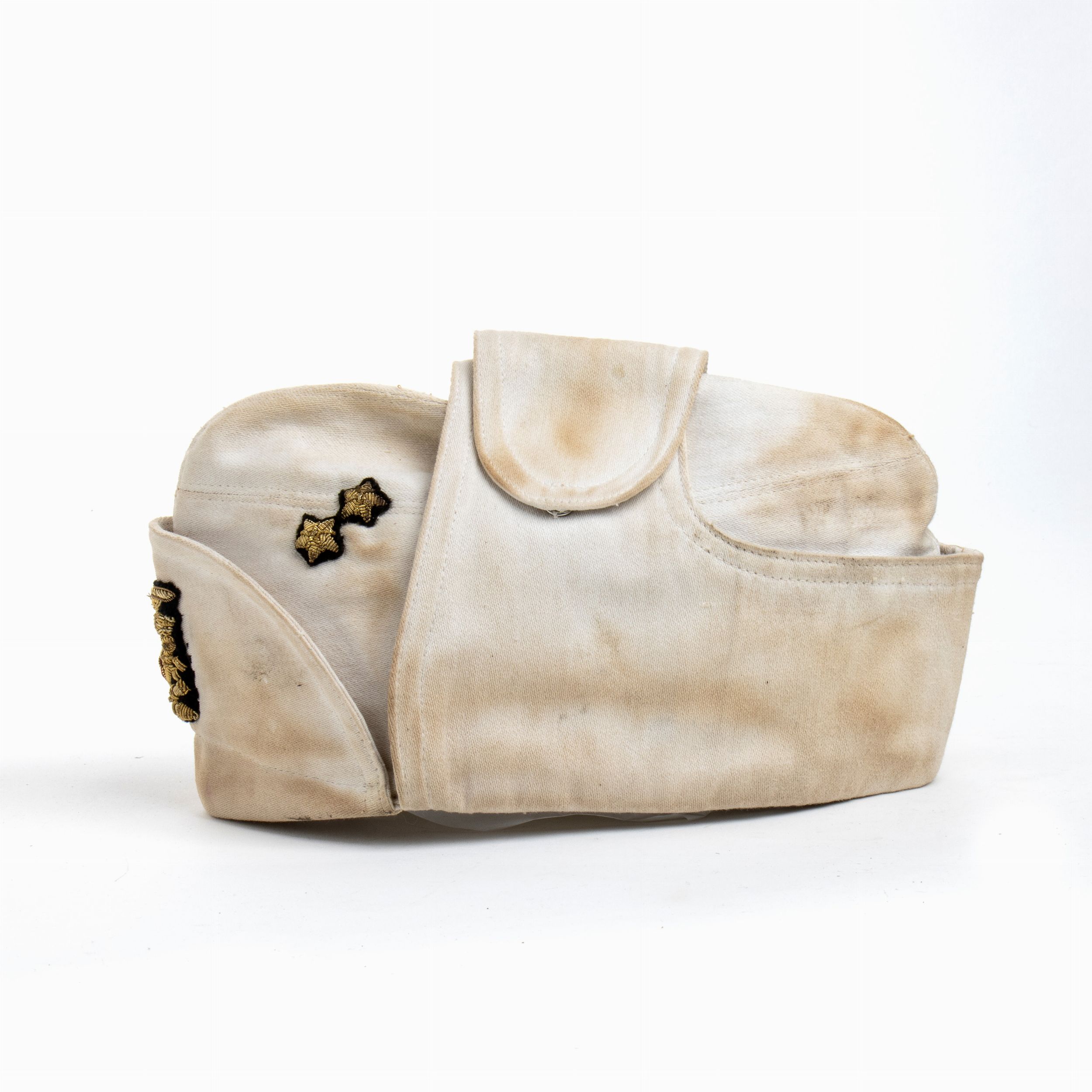 prima metà XX sec. in cotone bianco con fregi ricamati di canottiglia dorata su panno nero, ottimo stato