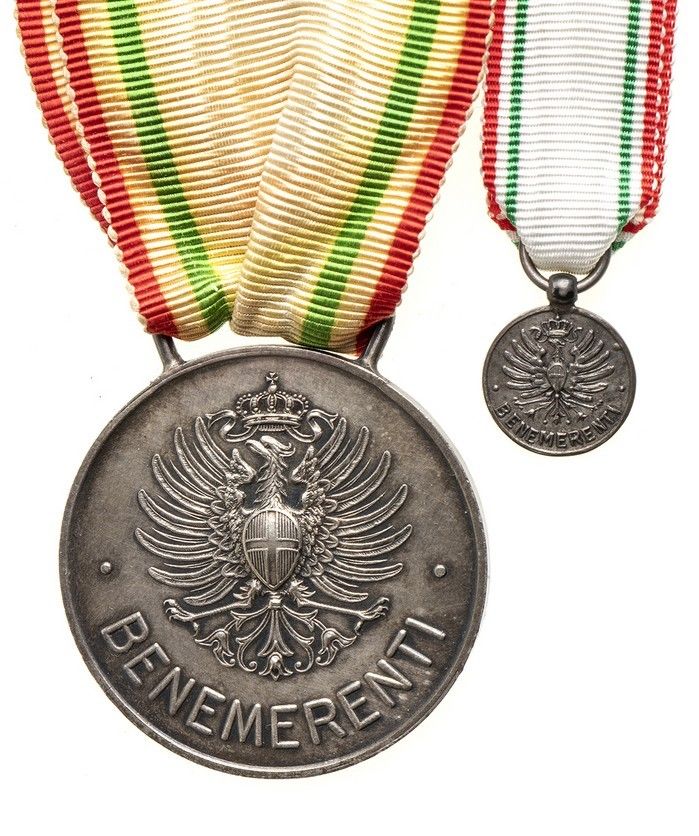 ORDINI E MEDAGLIE - ITALIA, REGNO... BELLA MEDAGLIA DI CONIO UFFICIALE, CAMBRETTA TONDA, NASTRO ORIGINALE, CON MINIATURA